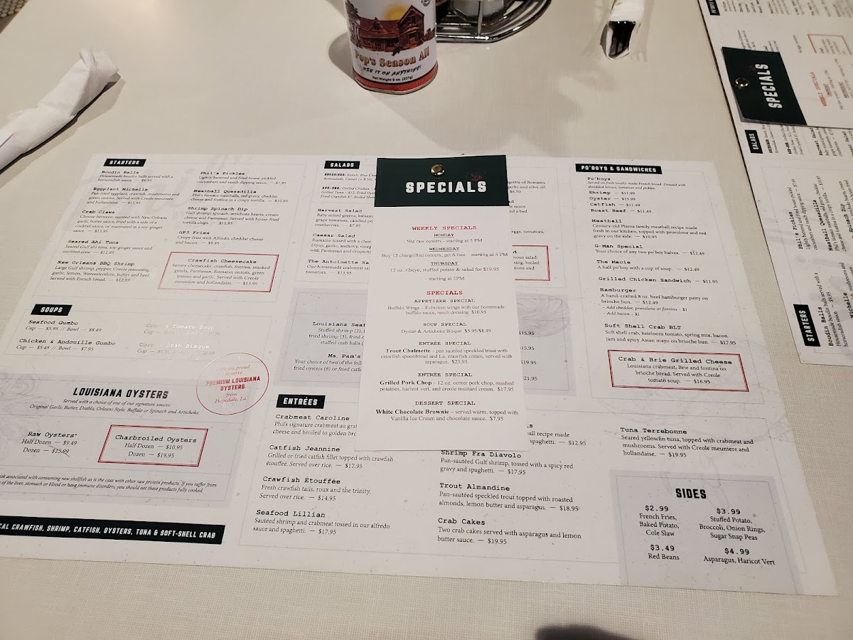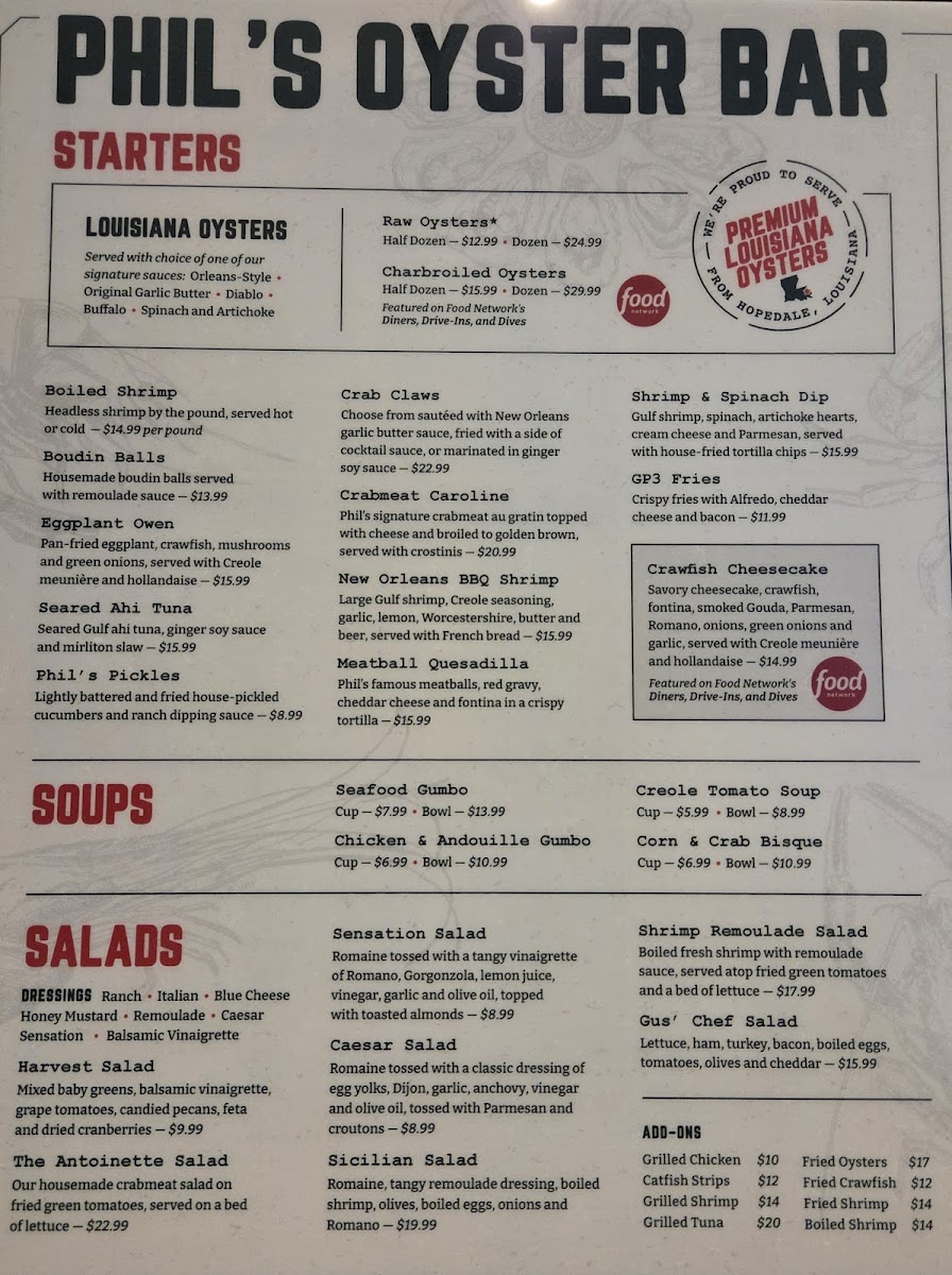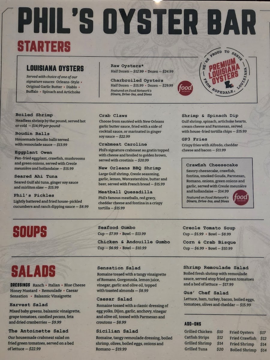Phil’s signature crabmeat au gratin topped with cheese and broiled to golden brown
