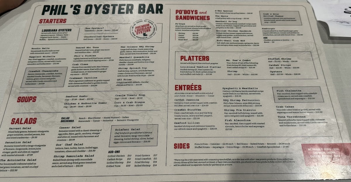 Stuffed shrimp (2), fried oysters (3), fried shrimp (3), fried catfish strips (3) and stuffed crab balls (2). NO SUBSTITUTIONS PLEASE