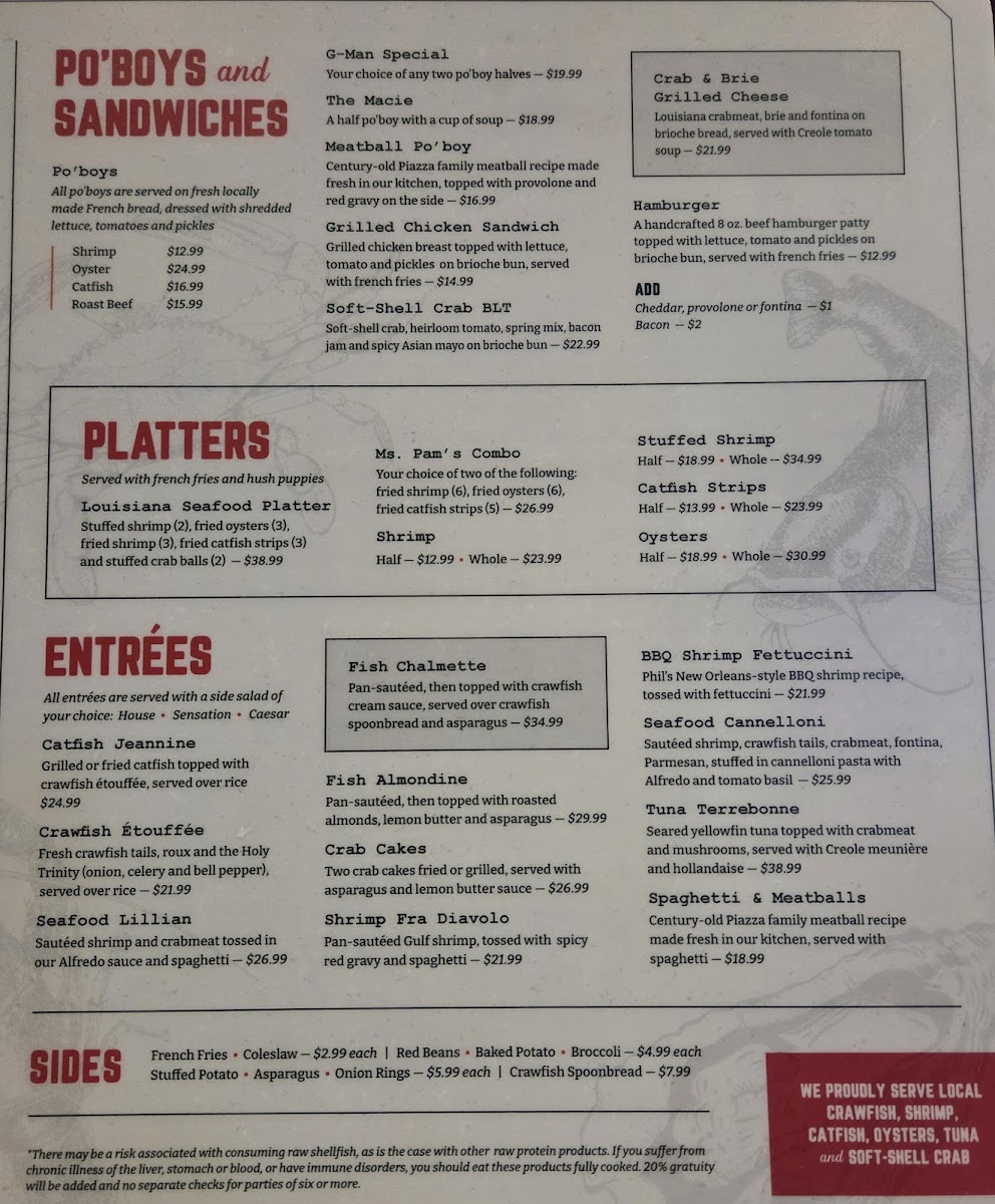 Grilled catfish fillet or fried catfish strips topped with crawfish étouffée. Served over rice