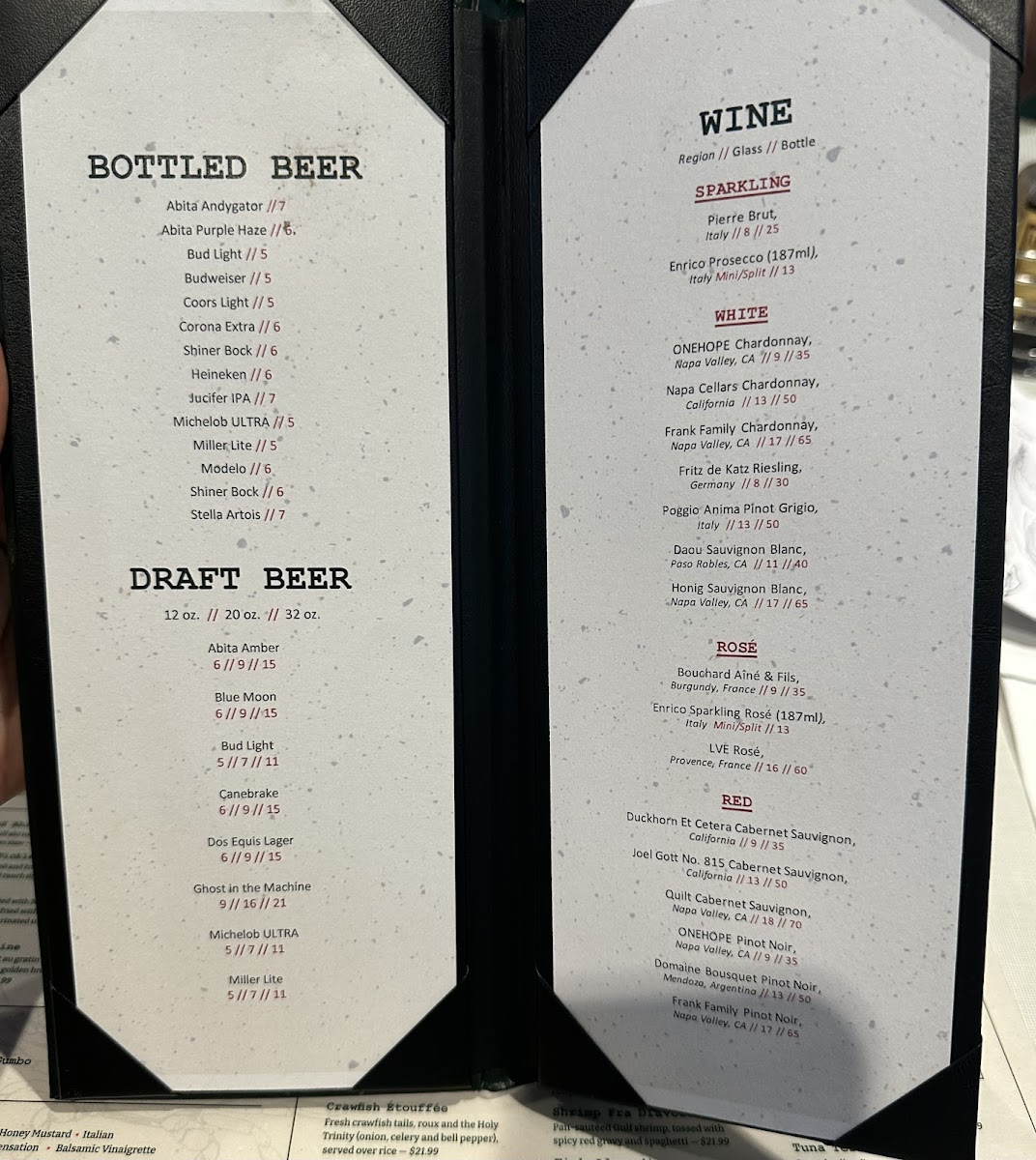 Large Gulf shrimp, pepper, Creole seasoning, garlic, lemon, Worcestershire, butter and beer. Served with French bread.